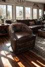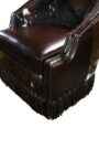 Hand-applied nailhead trim traces the chair's Western silhouette with deliberate precision, each tack set individually rather than machine-stamped. Leather fringe detailing along the seat back adds movement and authenticity, while the smooth swivel base operates on a ball-bearing mechanism rated for years of rotation without wobble or squeak.