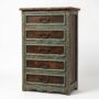 Hand-applied distressed turquoise finish — layered, chipped, and aged by hand over solid Mexican pine -