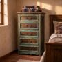The La Estrella Turquesa Chest is built from solid Mexican pine and finished in the same hand-applied distressed turquoise that defines the collection — teal layered over warm pine, deliberately aged and chipped until the wood bleeds through in exactly the right places. The finish looks like it took decades to develop because the craft behind it did. No two chests will ever come out identical, and that is entirely the point.