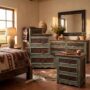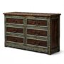 Wide, low, and unmistakably handcrafted — the La Estrella Turquesa Dresser is the anchor piece of the collection. Built from solid Mexican pine and finished in the same hand-applied distressed turquoise that defines every piece in this line, six full drawers span the generous width in two columns of three, each face framed in hand-carved rope-twist molding with the paint settling dark into the carved grooves the way it does on something genuinely old. The pine beneath bleeds warm through the teal — honey and amber where the finish has chipped away, exactly as intended.