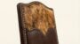 The chair’s tall, sculpted back features a hand-selected hide inset, framed in premium top-grain leather with meticulous stitching that forms a signature heart-inspired crest detail. Subtle nailhead trim outlines the silhouette, adding a touch of vintage western sophistication while reinforcing the handcrafted nature of the design.