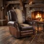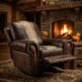 Antique pewter nailhead trim marks every transition — large domed heads running the rolled arm border and base perimeter, set against the caiman so the hardware and the hide compete for attention in the best possible way. The wingback-influenced back crown gives the silhouette presence from across the room. The swivel recliner base gives you full 360-degree rotation and a footrest that deploys smooth — so you can face the fire, the game, or the door without giving up an inch of comfort.