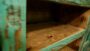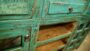 - Hand-applied verde turquoise finish with natural wood grain showing through the distressing
