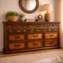 This dresser belongs in a home where furniture means something — where pieces get handed down, not hauled off. It pairs naturally with iron bed frames, full-grain leather headboards, and the kind of lived-in Western spaces that reject disposable design. For the bedroom that refuses to blend in.