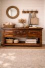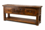 Clean lines meet rugged ranch craftsmanship in the Highland Ridge Console — a refined rustic statement piece designed to bring warmth, structure, and everyday functionality into modern ranch, farmhouse, and rustic luxury interiors. Built from solid wood and finished in a rich, hand-applied stain, this console highlights natural grain patterns and subtle distressing that create depth and timeless character.
