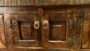 Framed drawer fronts, iron butterfly hinges, and hand-forged ring pulls add artisan detail and Old World charm, while the balanced design keeps the piece versatile enough for both traditional and contemporary spaces. Dual side drawers provide convenient storage for everyday essentials, while the central cabinet keeps items tucked away and organized. The open lower shelf offers additional space for baskets, décor, or storage, making this piece as practical as it is beautiful.