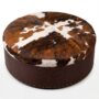 • Authentic hair-on cowhide top — real hide, natural tricolor pattern, no two ottomans the same