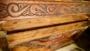 Crafted from solid wood and finished by hand, the piece showcases warm natural tones, intricate scroll carving, and authentic distressing that highlight its artisan construction. Nailhead trim and dimensional carving add depth and texture, creating a striking visual presence worthy of lodge estates and ranch homes alike.