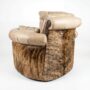 - Authentic brindle hide side panels — natural variation on every chair