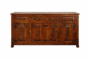 Crafted from solid wood and finished by hand, this buffet highlights natural grain movement, saw marks, and authentic distressing that give each piece its own distinctive character. Four upper drawers provide convenient storage for dining essentials and everyday items, while paneled cabinet doors below conceal spacious interior shelving for serveware, linens, and household organization.