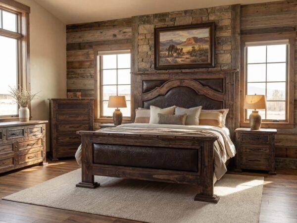 The Sage Stitch Bed brings together the rugged charm of the ranch and the timeless elegance of handcrafted design. Wrapped in premium sage-toned leather, this piece showcases a signature boot-stitch detail across a wingback headboard — a quiet nod to the heritage of the West.
