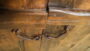 - Hand-forged twisted iron pulls and strap hinges referencing frontier blacksmith craftsmanship