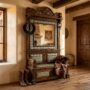 The Turquesa Entrada Hall Tree announces your home before you say a word. This is the piece that greets every guest, every neighbor, every tired rancher coming in from the field — a fully realized statement in solid wood, hand-carved detailing, and genuine turquoise inlay that catches the light like desert sky after rain.