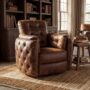 The Whiskey Row Tufted Swivel Recliner is the chair that ends arguments about who sits where. Built in our Texas workshop from full-grain leather the color of aged bourbon, it arrives with the kind of worn-in character that most furniture never earns — no matter how many decades it sits in a room.